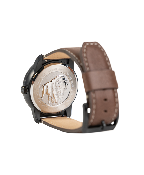 Buffalo Trace Leather Barrel Watch 42mm with Flask & Rocks