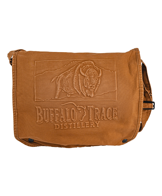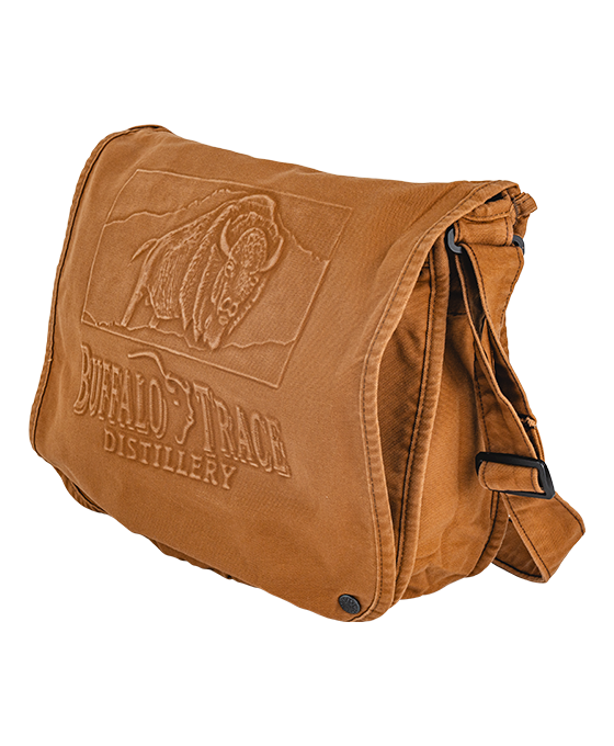 Carry a piece of American whiskey history. This premium brown canvas messenger features our iconic embossed buffalo and distillery logo - rugged heritage you can wear every day.