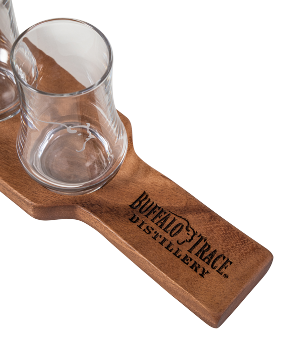 Enjoy an at-home neat whiskey tasting experience with the Buffalo Trace Tasting Board Set. Perfect for comparing up to four bourbon whiskey pours.