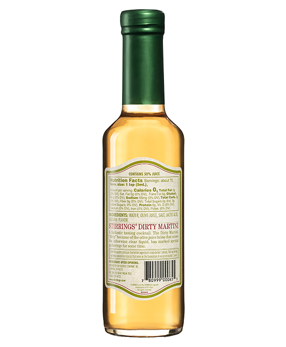 Elevate your home bar with Stirrings Dirty Martini Mixer. Crafted with all-natural imported olive brine, filtered water, and just the right amount of salt, it’s perfect for cocktail enthusiasts.