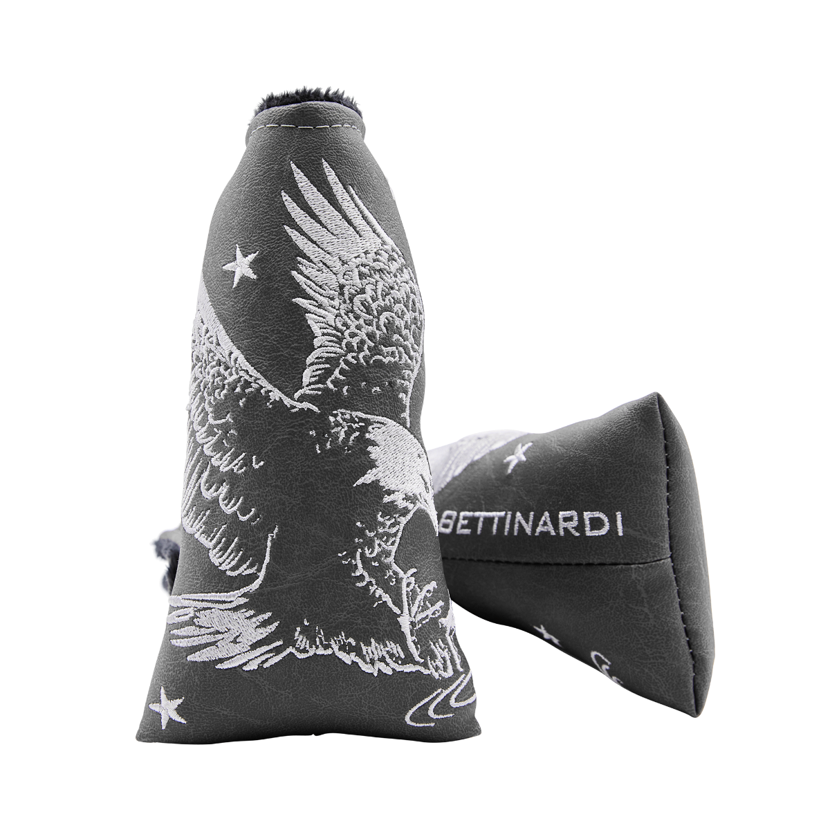 Patiently crafted with an unwavering commitment to excellence, the Bettinardi x Eagle Rare Distressed Grey blade putter headcover embodies a spirit of rarity and refinement.