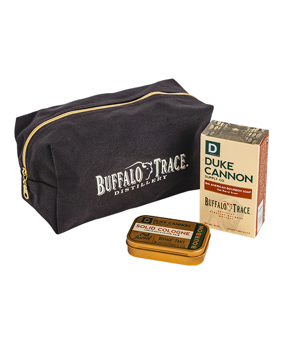 - Buffalo Trace Travel Kit - Duke Cannon solid cologne and Big Bourbon soap in TSA-friendly packaging