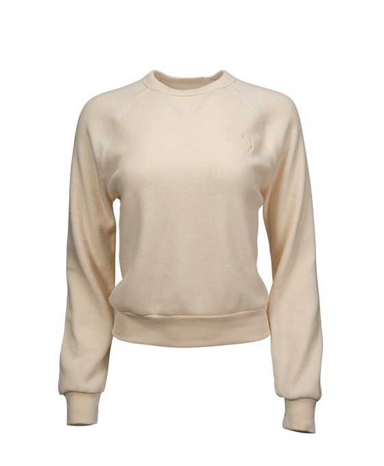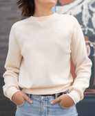 The weather outside may be frightful, but this trademark Buffalo Trace women’s crew neck sweatshirt is so delightful! Complete with tonal embroidery of our trademark buffalo head logo on the chest, this cream colored fleece sweatshirt is made of a cozy polyester, cotton and rayon blend.