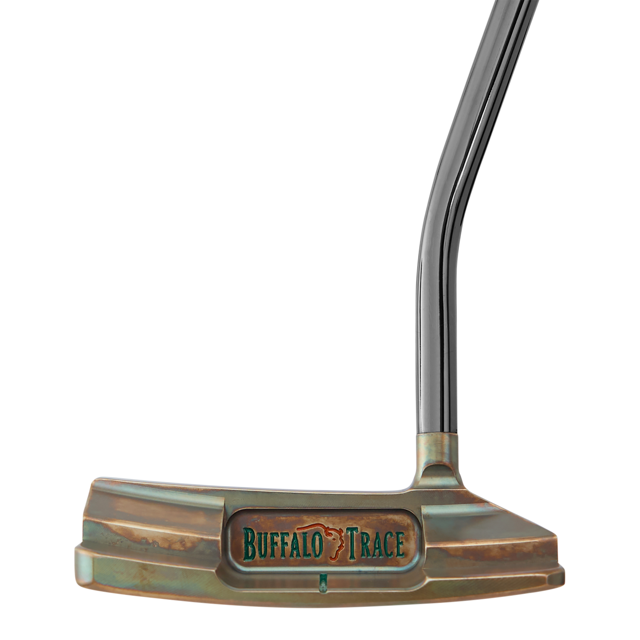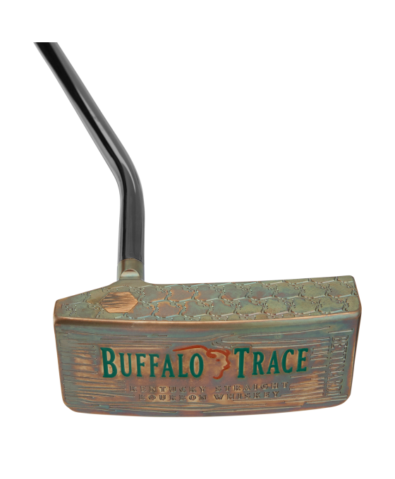 The Buffalo Trace x Bettinardi Queen B6 LH Putter honors the mighty buffalo and pioneering spirit. Crafted from premium 303 stainless steel with a distressed slate finish, it features intricate buffalo barrel wood inlays and fancy face milling for exceptional feel and control. The spud neck design with 1/8 toe hang offers precise balance, while the sole proudly displays the Buffalo Trace Kentucky Straight Bourbon Whiskey logo. Includes matching blade headcover.