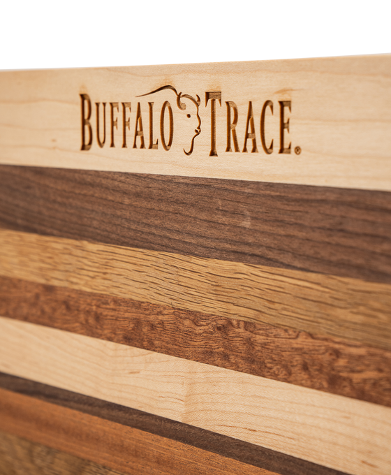 Bring the craftsmanship of Buffalo Trace Distillery to your kitchen with this sturdy multi-wood cutting board.