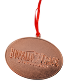 Add distillery elegance to your holiday tree with this Buffalo Trace Copper Plated Ornament. The oval design features raised Buffalo Trace Distillery lettering in a rich copper finish that beautifully catches light.