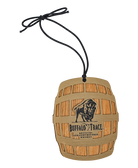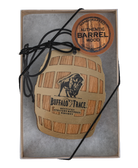 Celebrate bourbon heritage with this Buffalo Trace Gold Barrel Ornament featuring authentic barrel styling with metal hoops and wood grain details. The ornament displays the classic Buffalo Trace logo with buffalo head design.