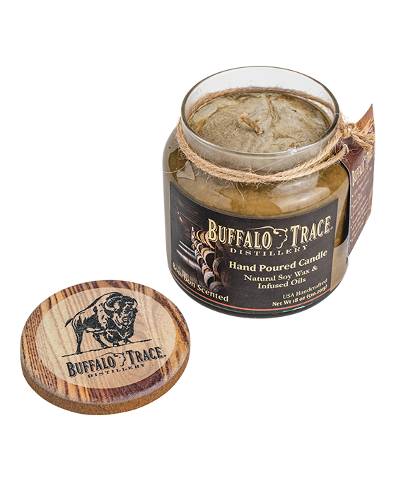 Experience the rich aroma of Buffalo Trace Bourbon with our hand-poured 18oz soy jar candle for a clean, long-lasting burn.