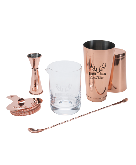 Upgrade your bourbon bar with the Stagg Essential Copper Cocktail Barware Set. Crafted from durable copper and branded with our signature Stagg logo, this set has everything you need to craft classic cocktails at home.