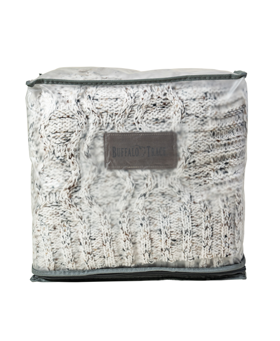 Snuggle up with the Buffalo Trace Cable Knit Blanket, a warm chunky knit throw that brings subtle style and bourbon flair to any room.