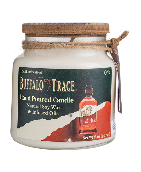Introducing the Buffalo Trace Oak 18oz Soy Wax Candle, handcrafted in the USA for a luxurious, clean burn.