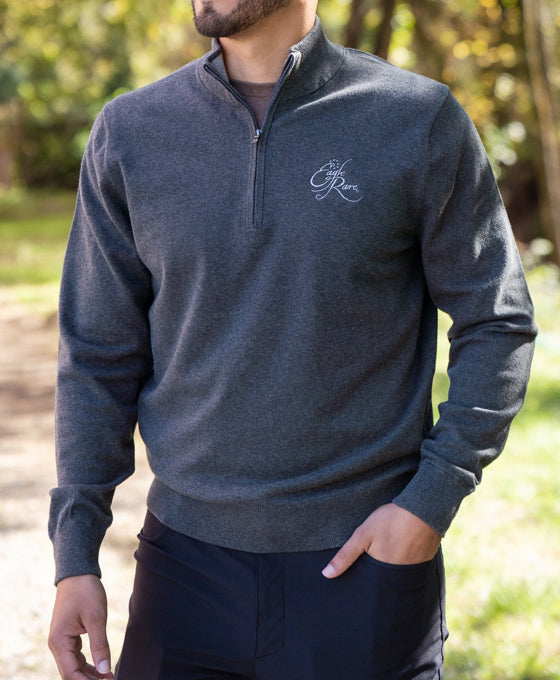 Handle cool mornings, afternoons, or evenings with ease in our premium quarter zip sweater. Featuring understated Eagle Rare embroidery on the left chest and tonal elbow patches, the high quality triblend fabric blend of cotton, nylon and spandex will keep its form for years to come.