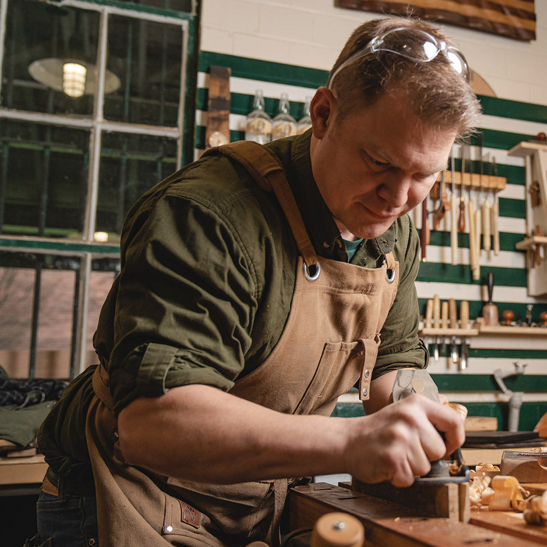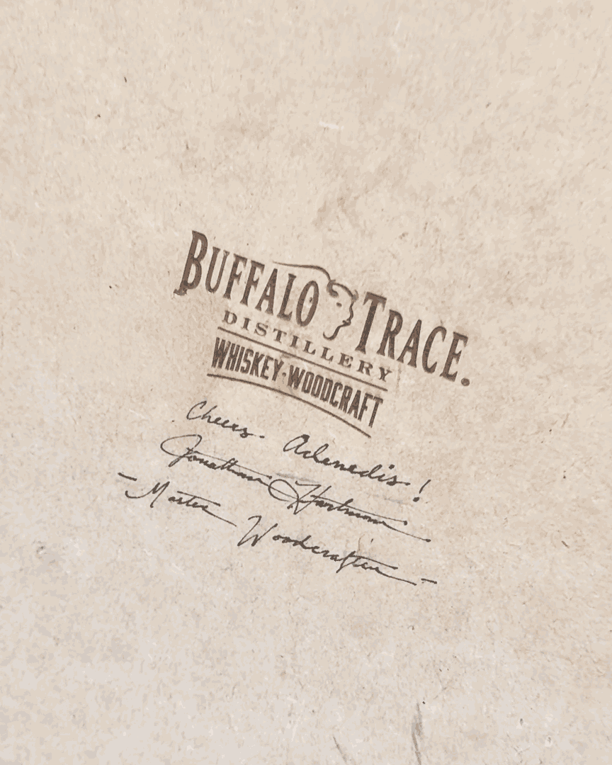 Under Master Woodcrafter Jon Hartman's guidance, authentic Buffalo Trace barrel wood becomes heirloom treasures that tell our distillery's story.