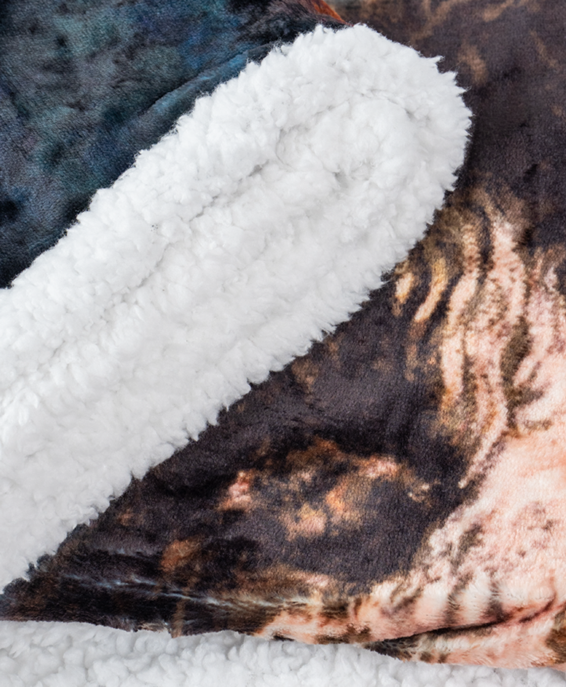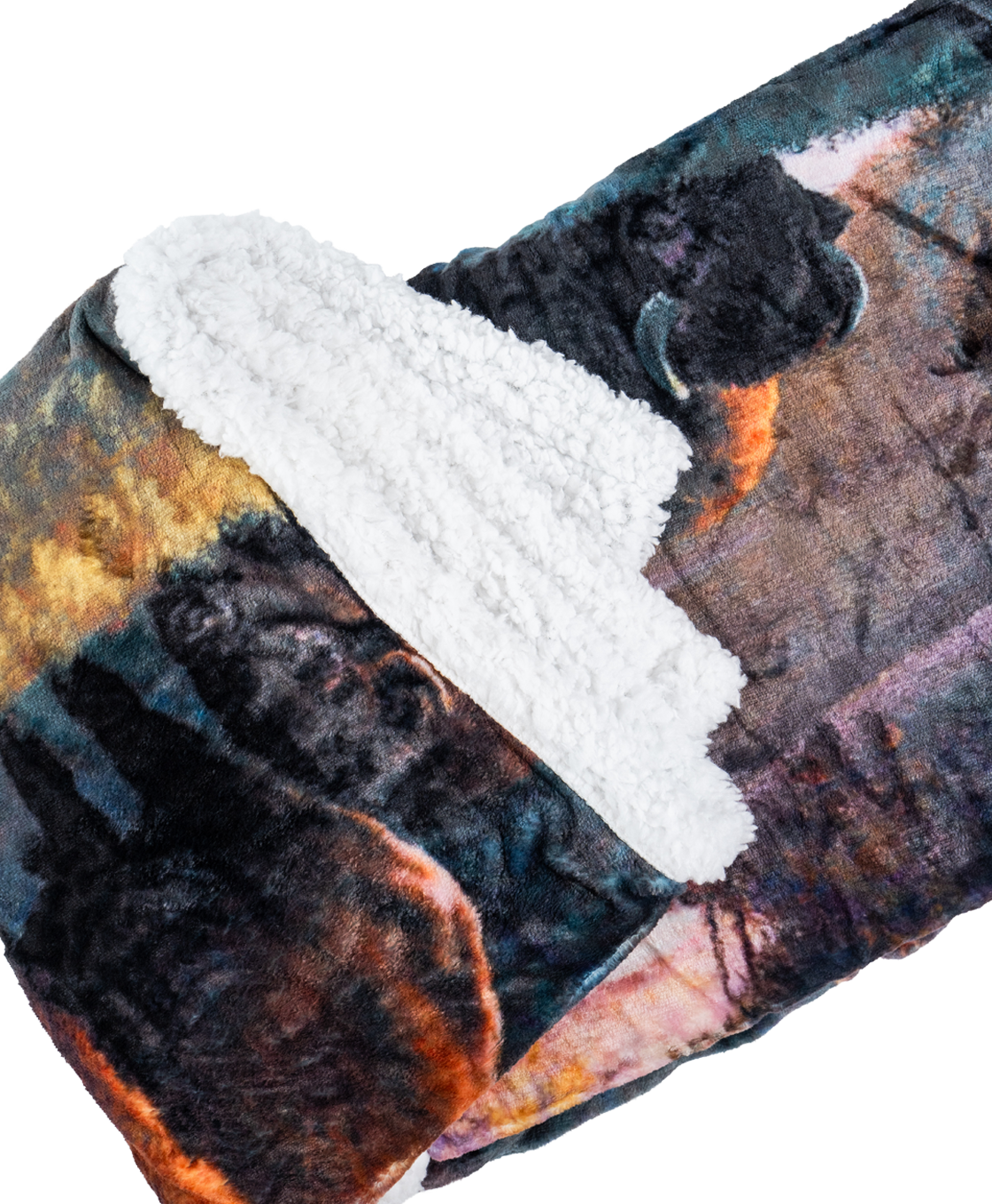 Wrap up in this ultra-soft Buffalo Trace fleece blanket, featuring Sherpa lining and a bold buffalo graphic that’s perfect for couches, cabins, and game days. Size: 60" x 48".