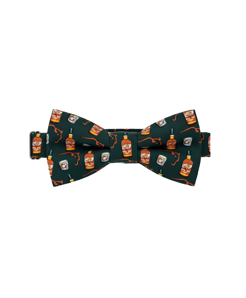 Make any formal occasion unforgettable with this Buffalo Trace Vineyard Vines Bow Tie. Crafted in Buffalo Trace Distillery's signature dark green, it features a vibrant bourbon-inspired print.