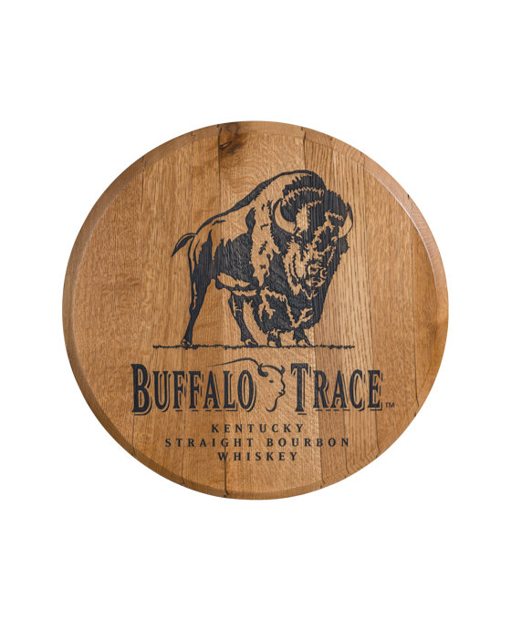 Bring rustic charm and bourbon heritage to your home with this authentic bourbon barrel head. Laser engraved with a bold Standing Buffalo over the Buffalo Trace logo, it makes a stunning focal point for any wall.