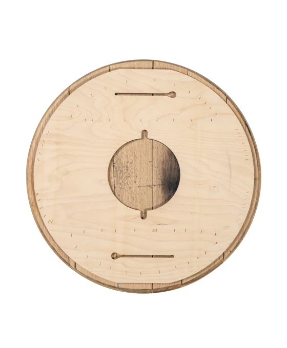 - Authentic bourbon barrel head, reclaimed and eco-friendly